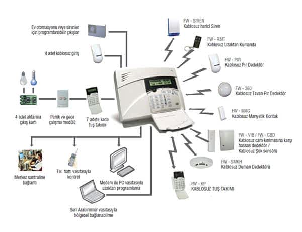 Alarm sistemi beş ana bölümden oluşur.